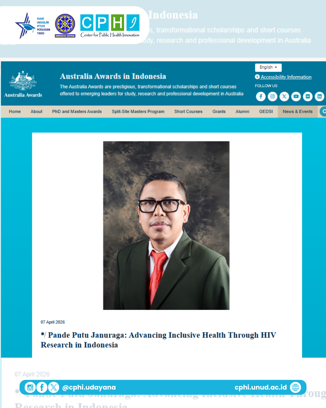 PUI-PT Center for Public Health Innovation (CPHI) Universitas Udayana mengapresiasi capaian dan kontribusi Prof. dr. Pande Putu Januraga, M.Kes., DrPH., dalam mendorong pengembangan riset kesehatan masyarakat yang inklusif, khususnya dalam bidang HIV dan penguatan sistem kesehatan di Indonesia. Perjalanan Prof. Pande di bidang kesehatan masyarakat berawal dari pengalaman klinis sebagai dokter, yang kemudian membawanya pada pemahaman bahwa tantangan kesehatan tidak hanya berada pada tingkat individu, tetapi juga pada sistem yang lebih luas, termasuk akses layanan, kebijakan, dan ketimpangan kesehatan di masyarakat. Kesadaran ini mendorongnya untuk mendalami kesehatan masyarakat dan mengembangkan pendekatan berbasis bukti serta berorientasi pada komunitas.